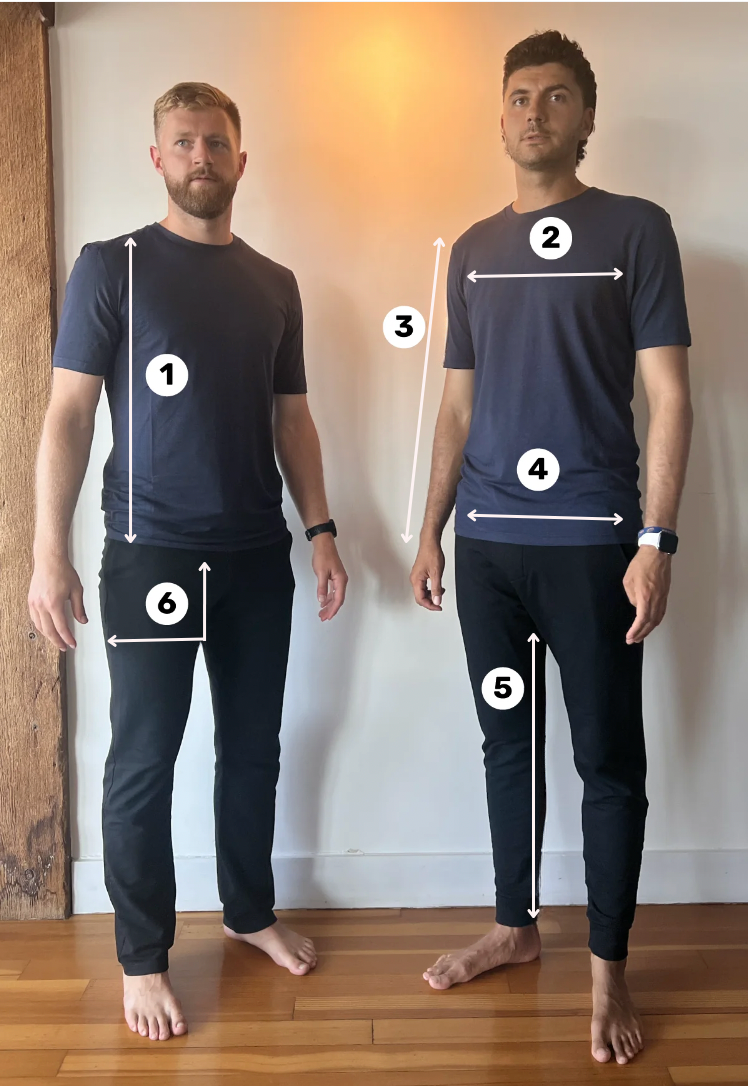 If you've got a similar garment you love, grab a measuring tape and compare it's measurements with our Navas garment size charts below.